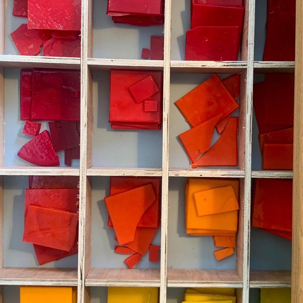 Nos mosaïques sont réalisées à partir d'émaux et de dalles de verre Albertini, dernier et unique atelier de verre artisanal Français.